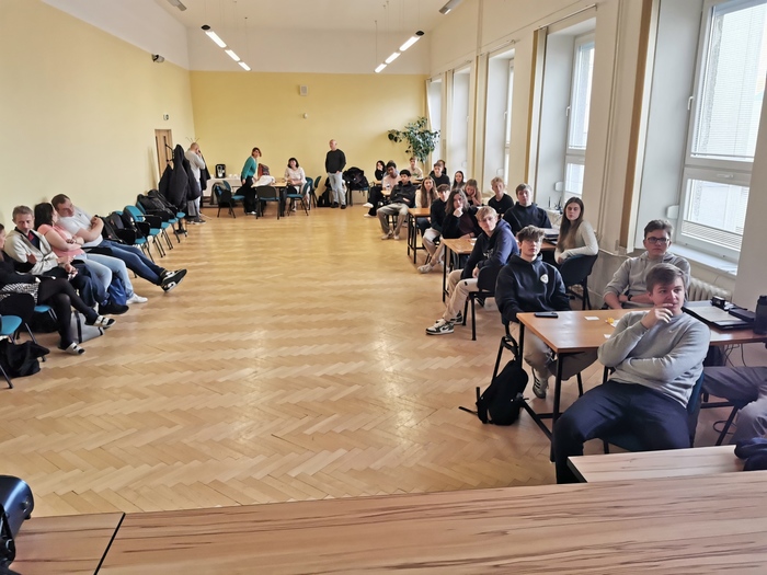 V pondělí 7. října 2024 naše aula zažila dopolední setkání žáků z rozličných koutů Evropy v rámci spolupráce Erasmus+. Po úvodní Keynote o využití AI, VR, IoT ve světě následovala seznamovací část, kterou jsme nechali na ChatGPT.