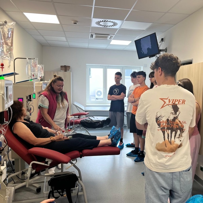 Součástí programu byla návštěva transfúzní stanice, kde se studenti dozvěděli důležité informace o dárcovství krve a plazmy. Zájemci si navíc mohli nechat určit svou krevní skupinu, což pro mnohé bylo zcela novou zkušeností.